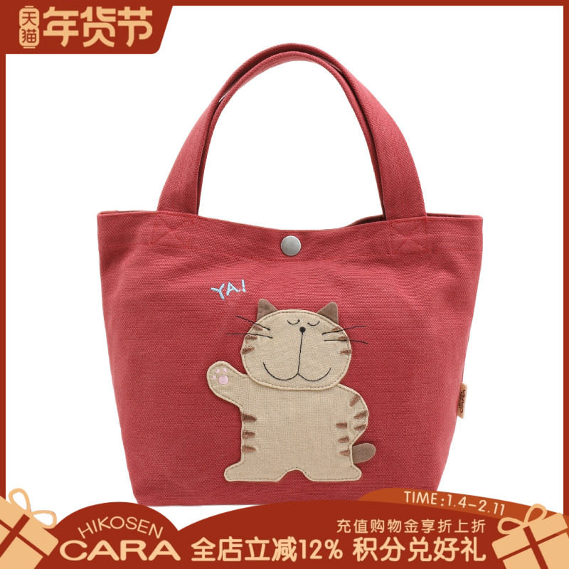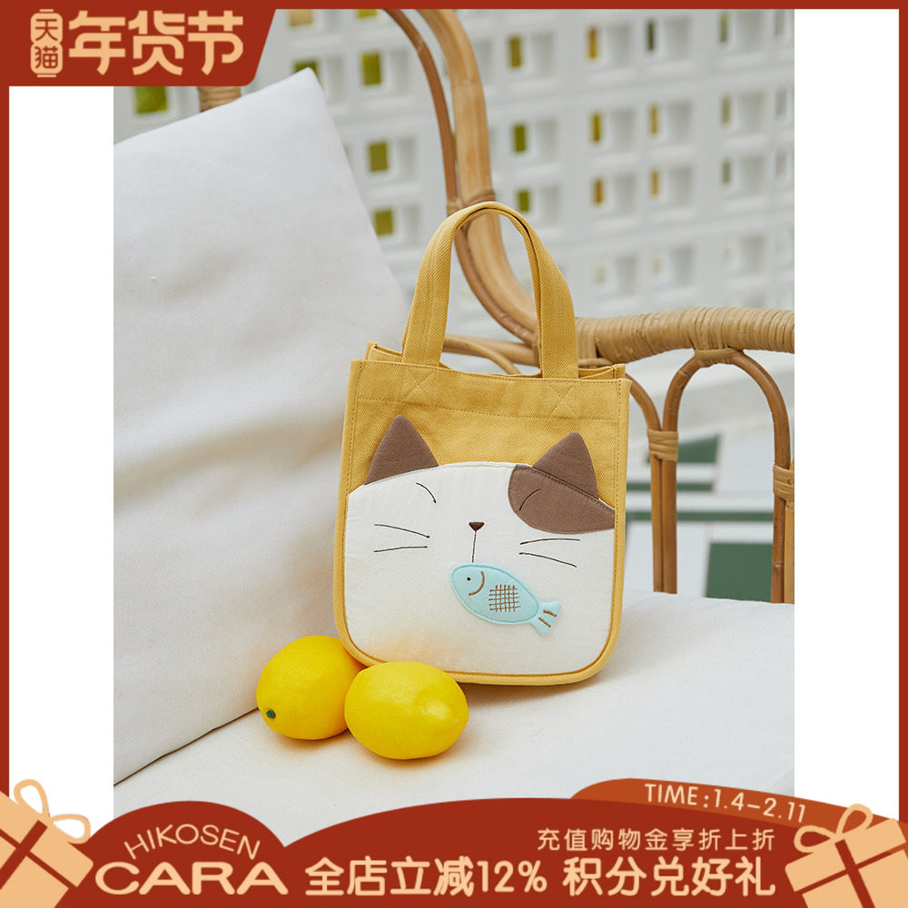 HIKOSEN CARA卡拉猫原创手工可爱帆布手拎手提包饭盒袋便当包布包