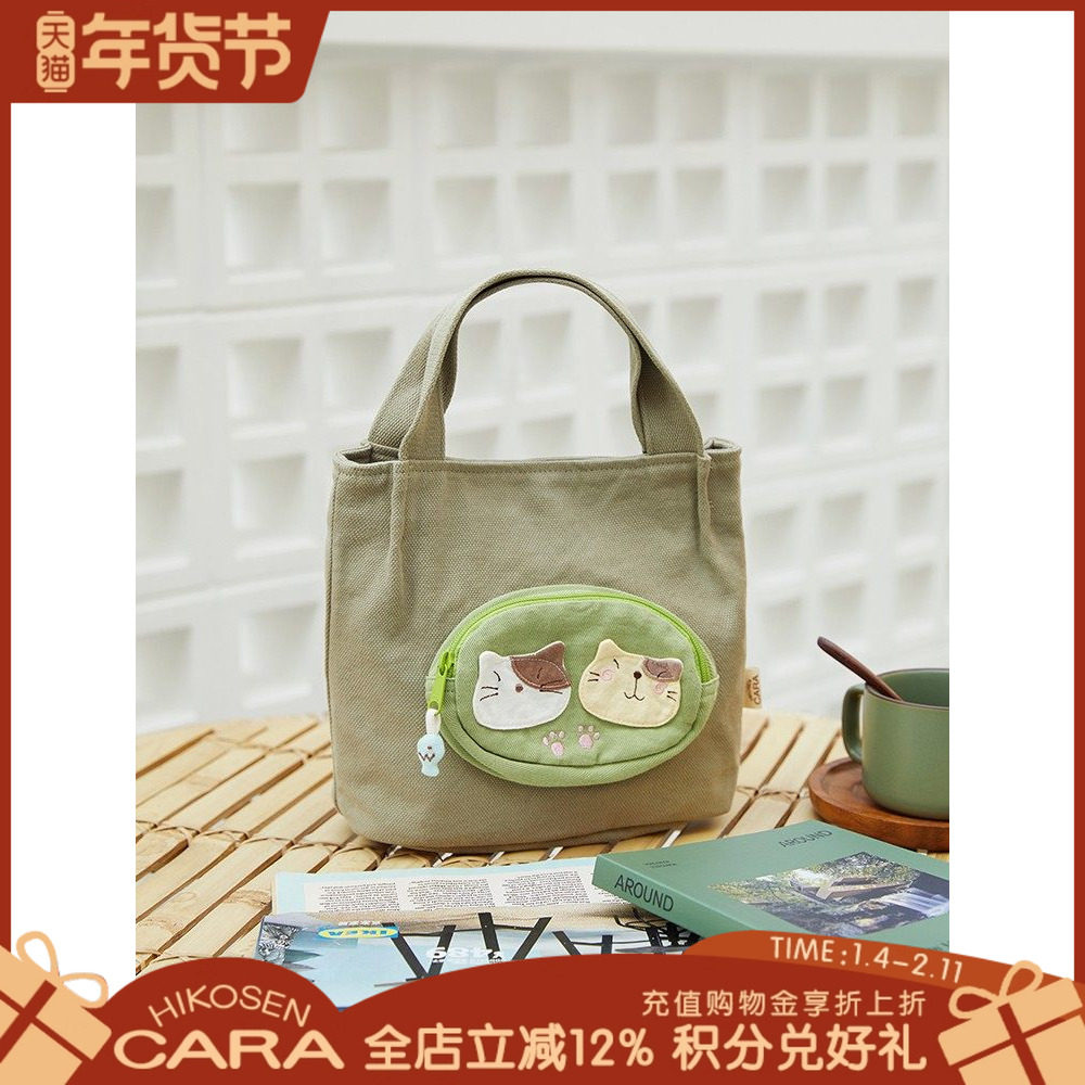 HIKOSEN CARA卡拉猫小拱日系猫咪手提包女通勤帆布饭盒包托特包