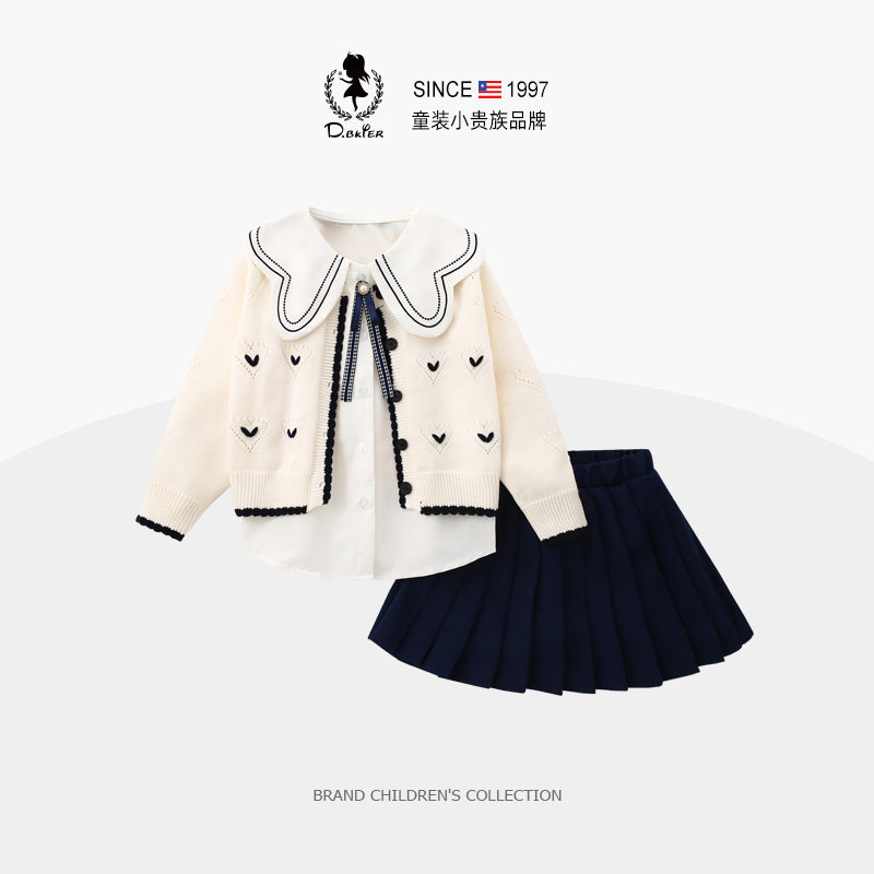 D.Bkyer原创女童套装儿童jk女孩学院风衣服学生裙子秋冬装三件套
