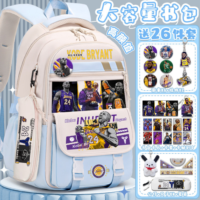 科比书包男小学生24号卡通联名大容量减负三到六年级初中生护脊轻