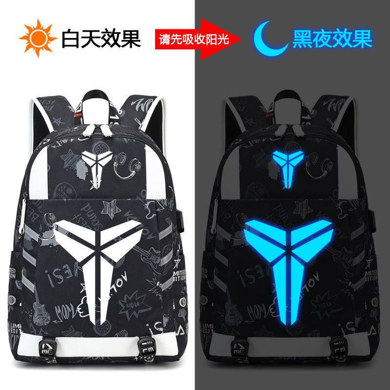 2024科比黑曼巴背包中学生书包篮球湖人夜光双肩包詹姆斯大容量运