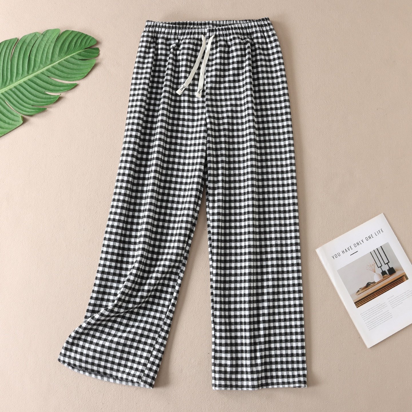 上身即暖秋冬磨毛绒感保暖格子居家裤女宽松阔腿慵懒睡裤长W3095