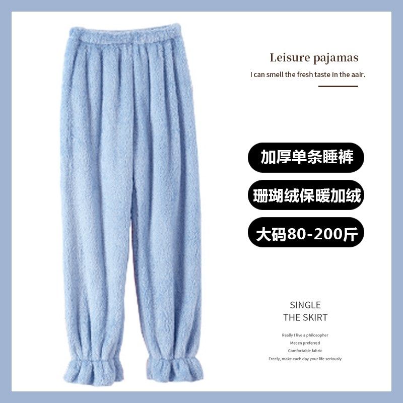 珊瑚绒睡裤女冬季加绒保暖大码200斤宽松居家裤女秋冬款可爱甜美