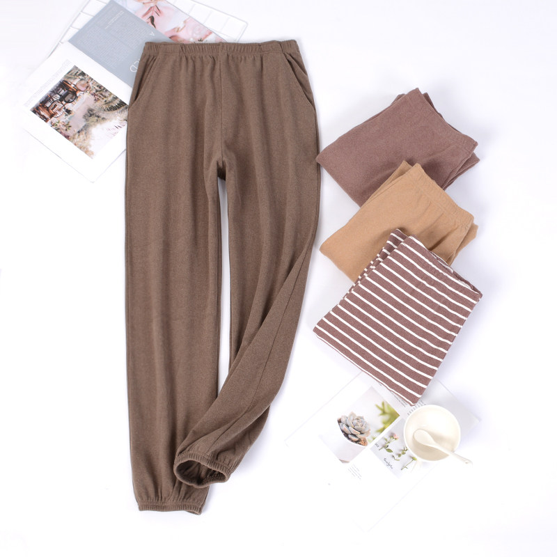 睡裤女士秋冬季保暖纯棉居家裤女休闲长裤简约宽松加厚夹层家居裤