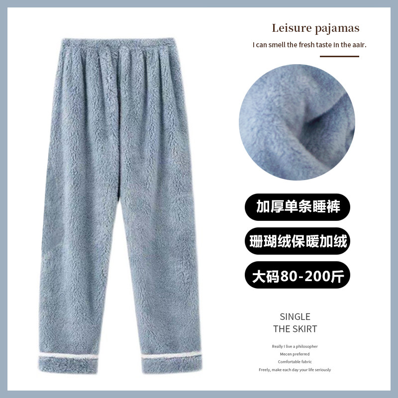 男士秋冬季海岛绒保暖睡裤加绒加厚休闲长裤大码200斤居家裤女