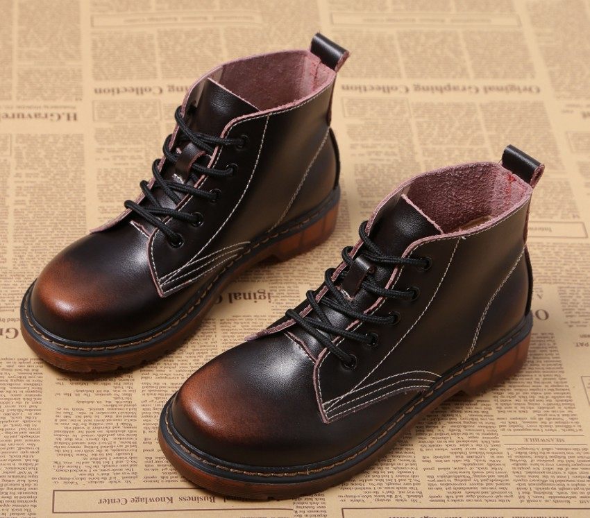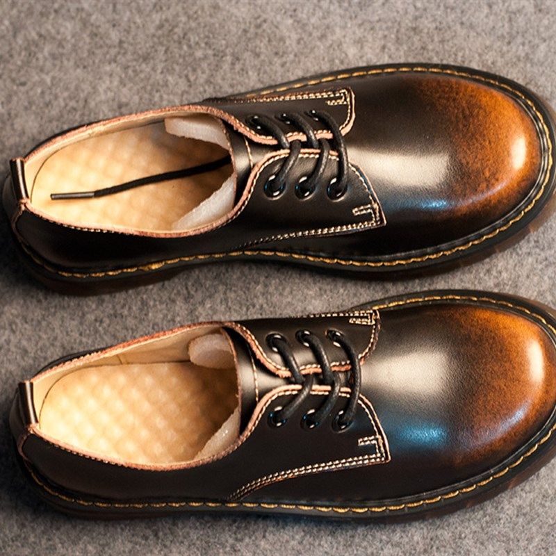 英伦风复古马丁鞋女大头皮鞋大码40-43中帮平底学生牛津鞋擦色