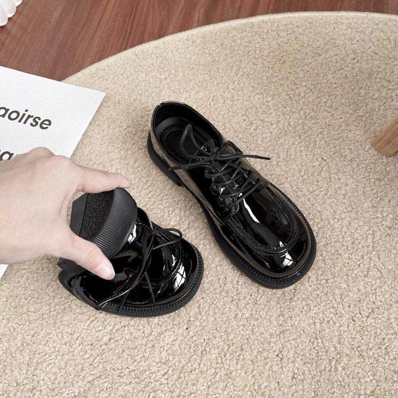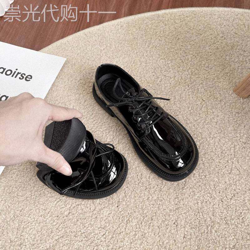 英伦风平底小皮鞋女2025春秋新款圆头系带牛津鞋漆皮亮面马丁单鞋