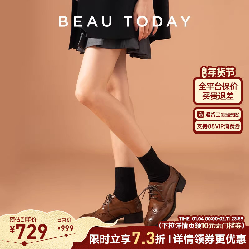 BeauToday平底单鞋女春季BT英伦风小皮鞋女布洛克鞋牛津鞋乐福鞋
