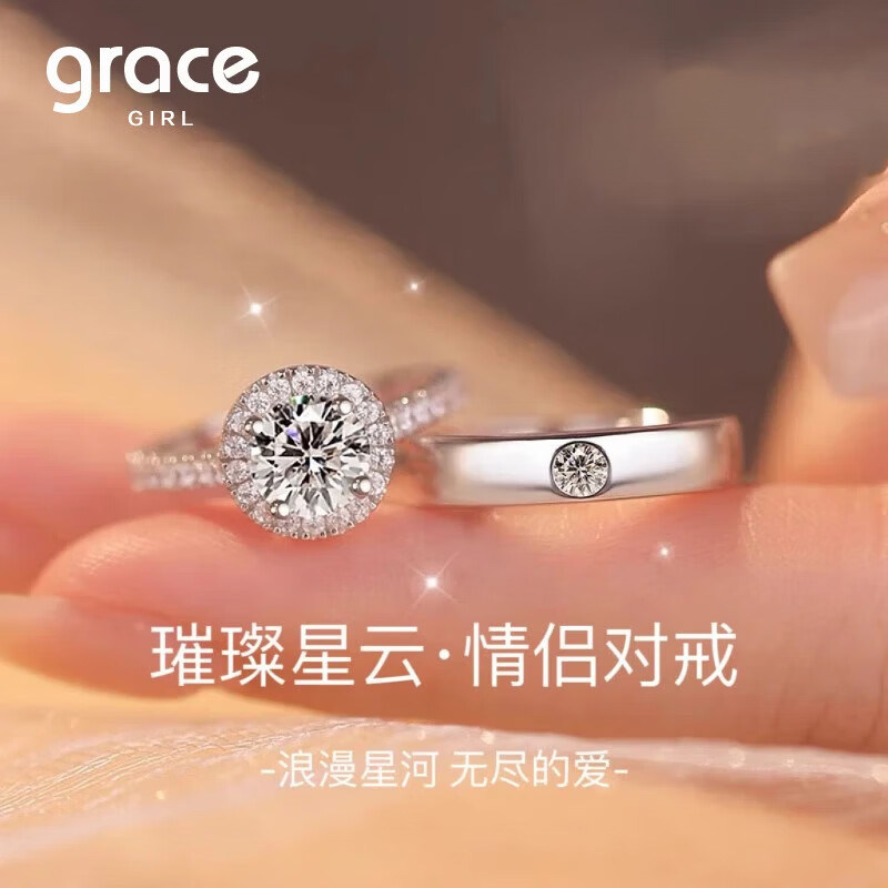 Grace Girl钻戒一克拉培育钻石戒指情侣对戒真钻男女士结订求婚礼