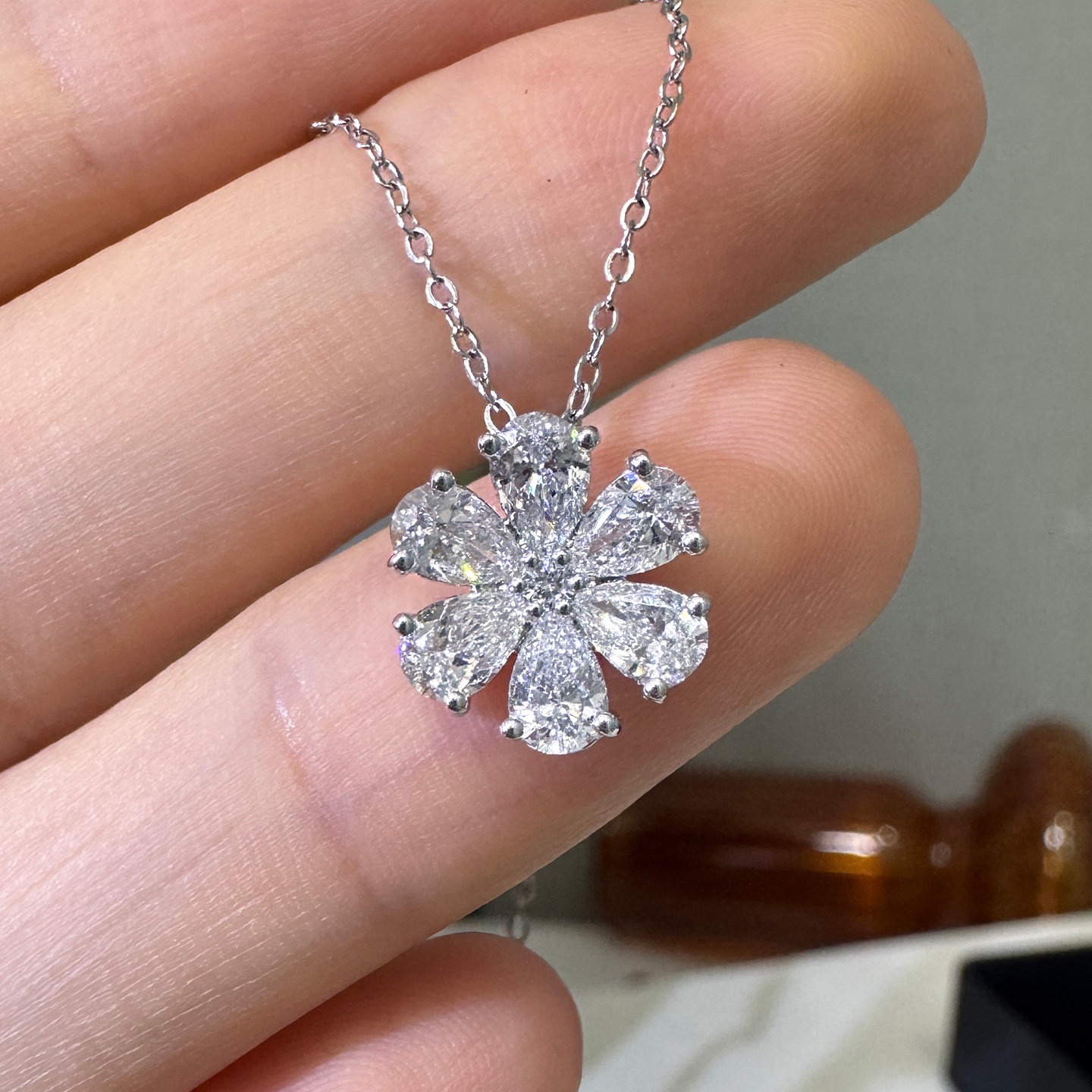 闪耀之星 四叶草钻石吊坠18K金人工培育钻石项链一克拉单钻项链