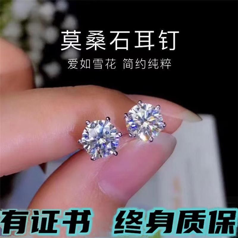 莫桑石简约纯银耳50分一克拉钻石六爪男女嘻哈超闪养耳不用摘耳钉