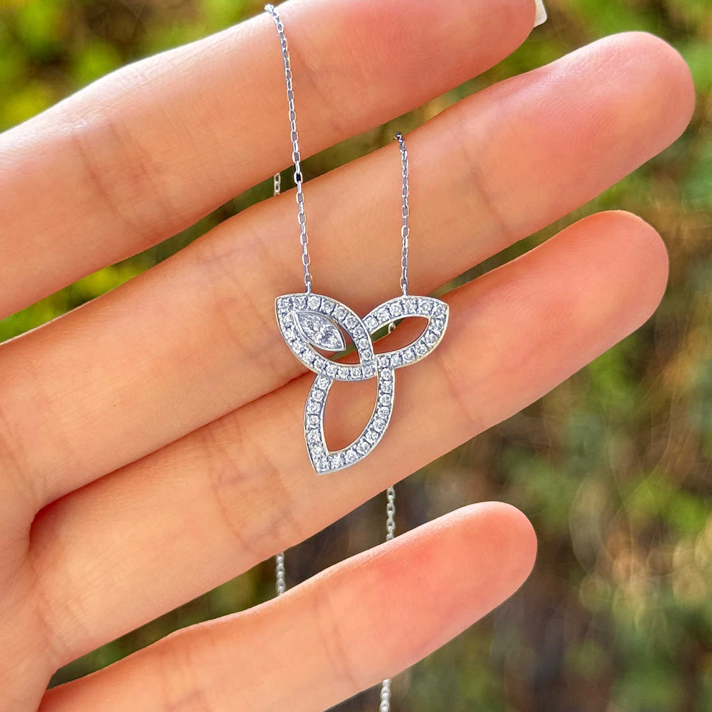 三叶草 PT950铂金钻石套链人工培育钻石项链一克拉钻石吊坠