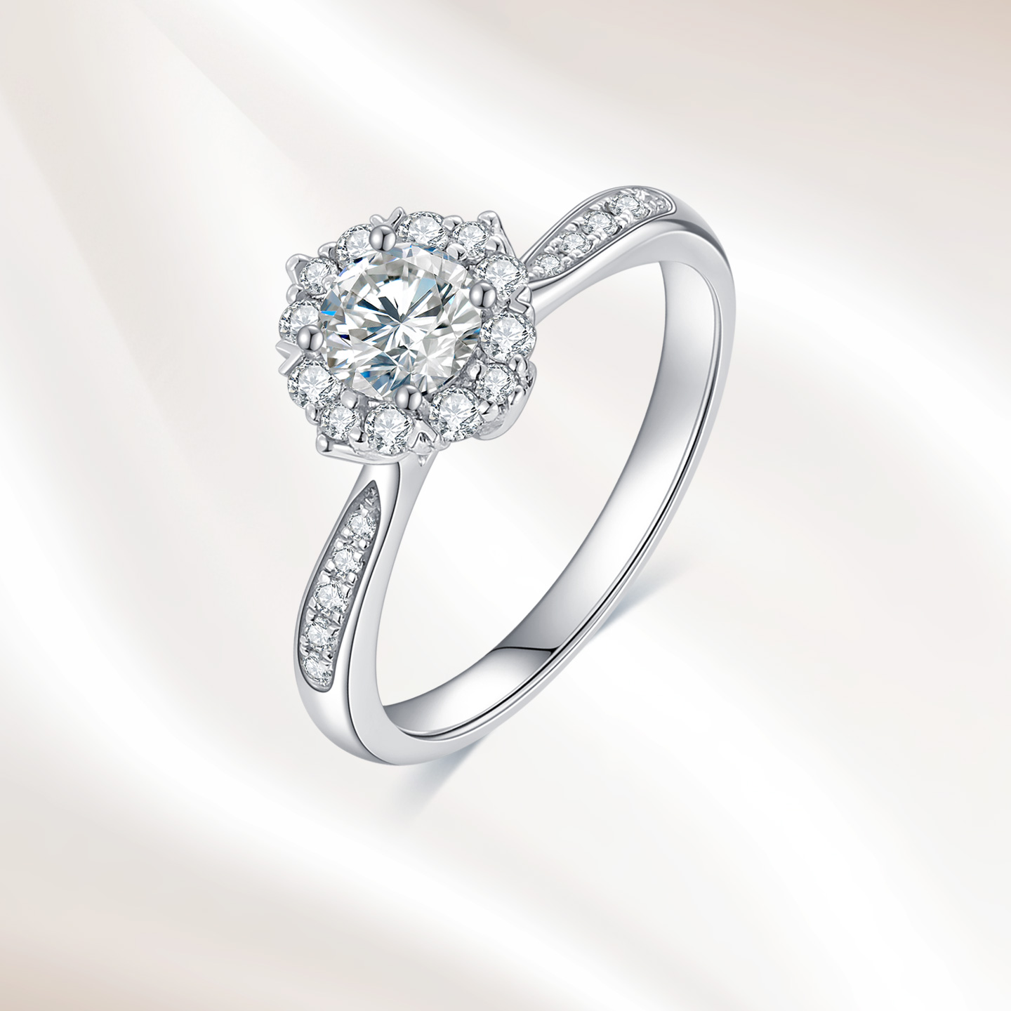 18K金培育钻石女士结婚戒指一克拉icon围镶款铂金求婚真钻戒50分