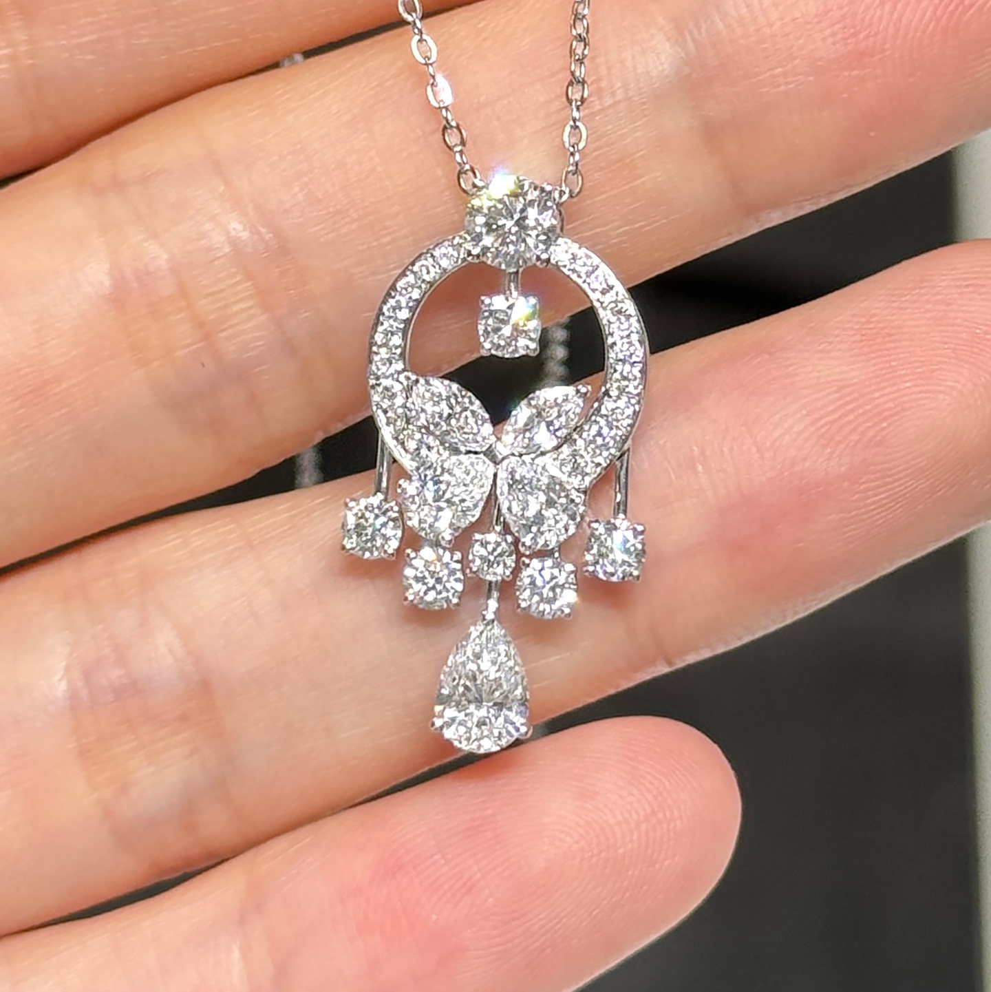 聚光灯 人工培育钻石吊坠一克拉钻石项链真钻雷迪恩铂金钻石吊坠