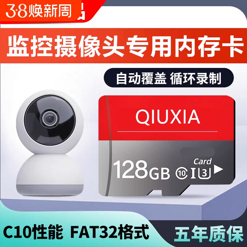适用小米监控摄像头内存卡128g家用存储卡高速fat32专用sd卡TF卡