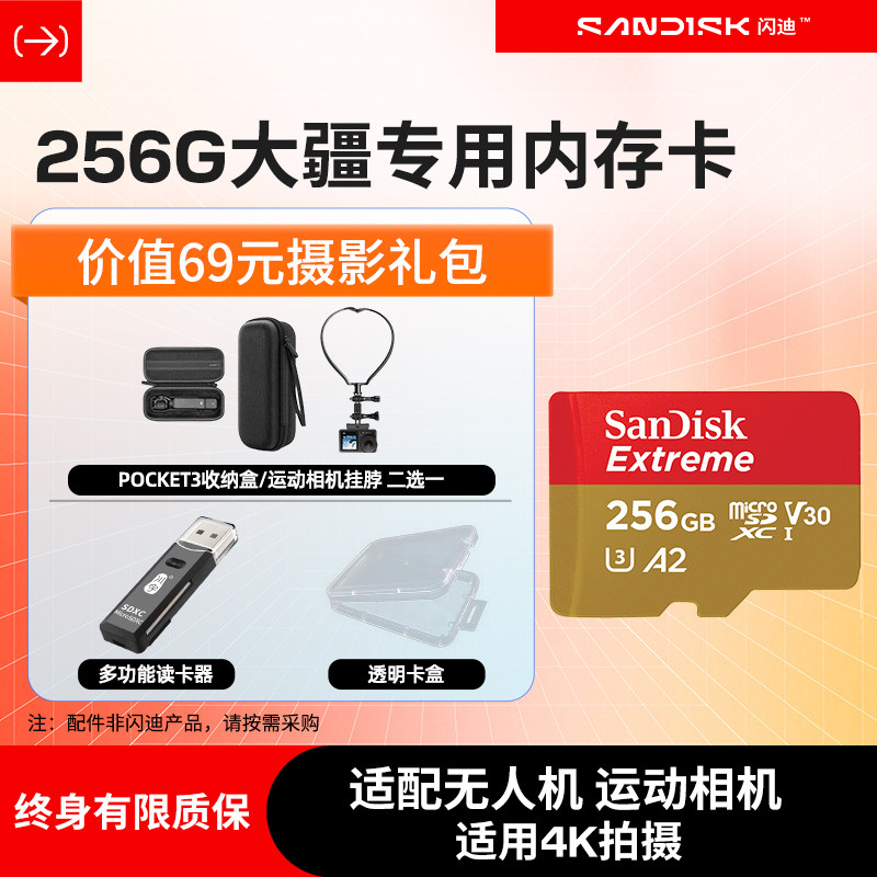 闪迪tf卡256G大疆pocket3闪存无人机sd存储卡action6/5pro内存卡