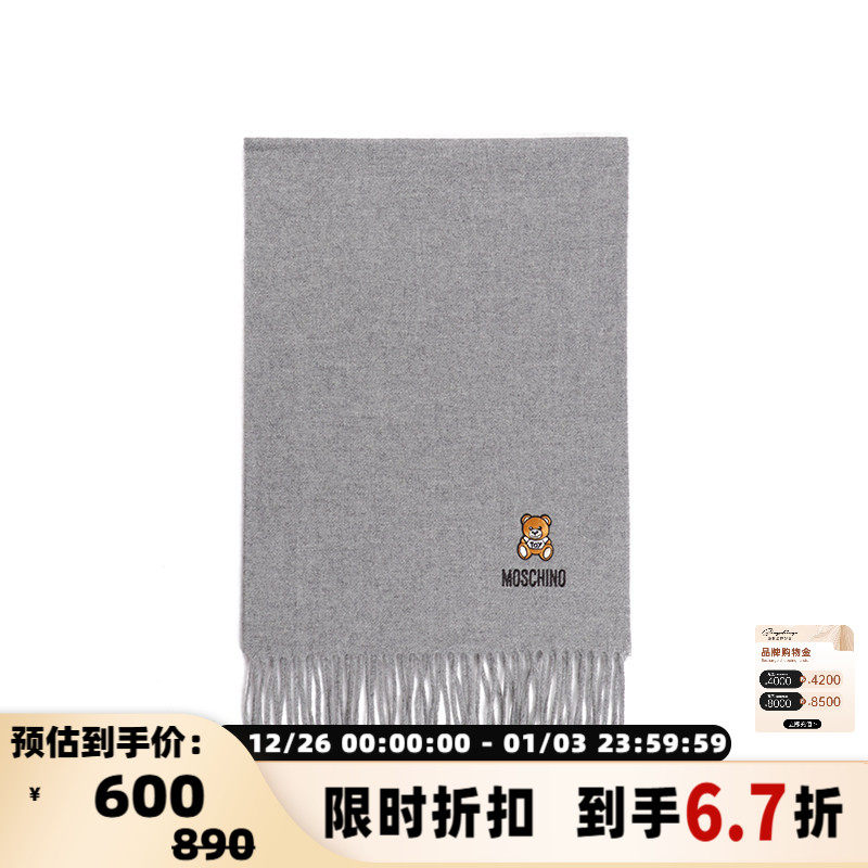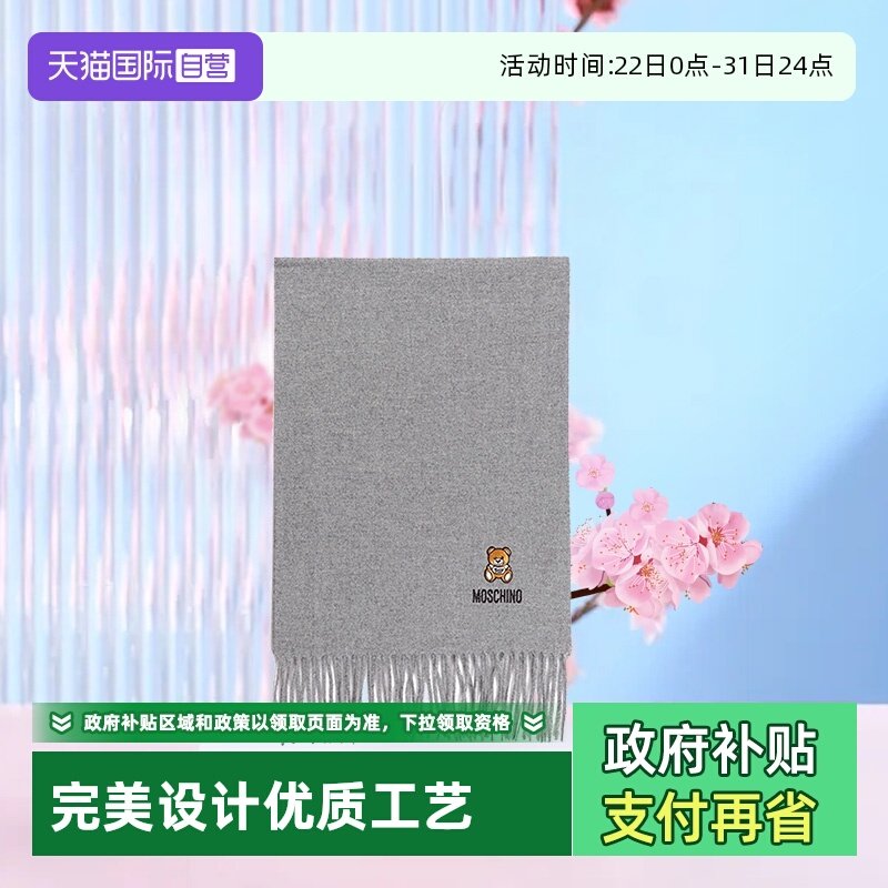 MOSCHINO 莫斯奇诺 男女同款灰色小熊图案装饰羊毛围巾 300154