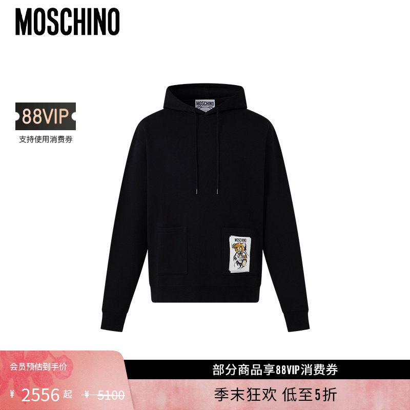 【礼物低至5折】Moschino/莫斯奇诺 男士Teddy Bear贴饰连帽衫