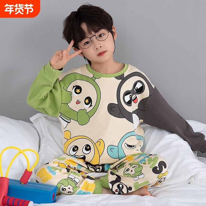 儿童睡衣男童春秋季纯棉秋衣秋裤长袖套装可外穿蛋仔中大童家居服