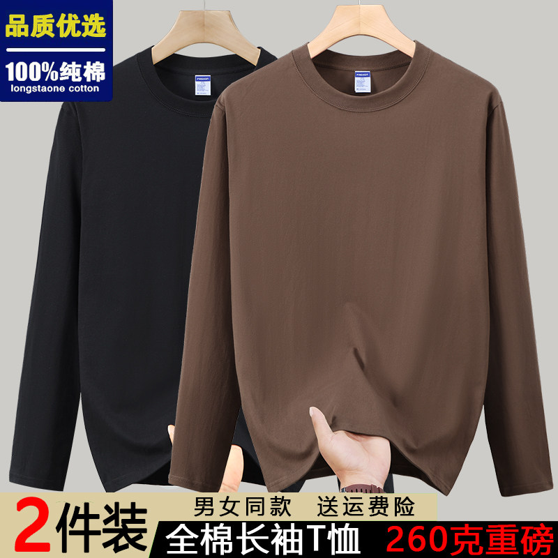 全棉重磅260克新疆纯棉长袖t恤男女同款春秋外穿内搭打底衫秋衣男