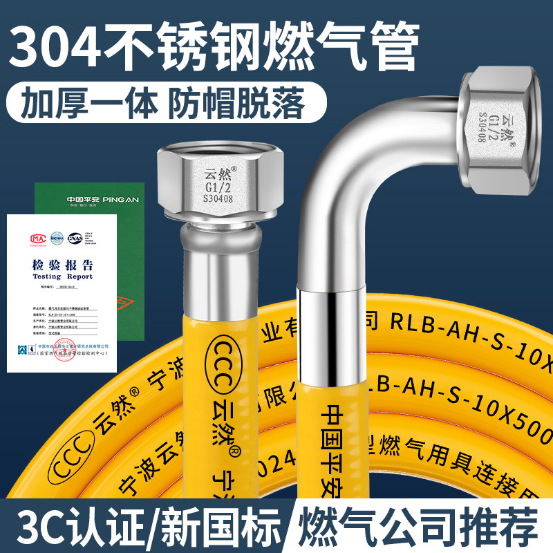 2025新国标燃气管天然气软管304不锈钢波纹管煤气灶防爆专用连接