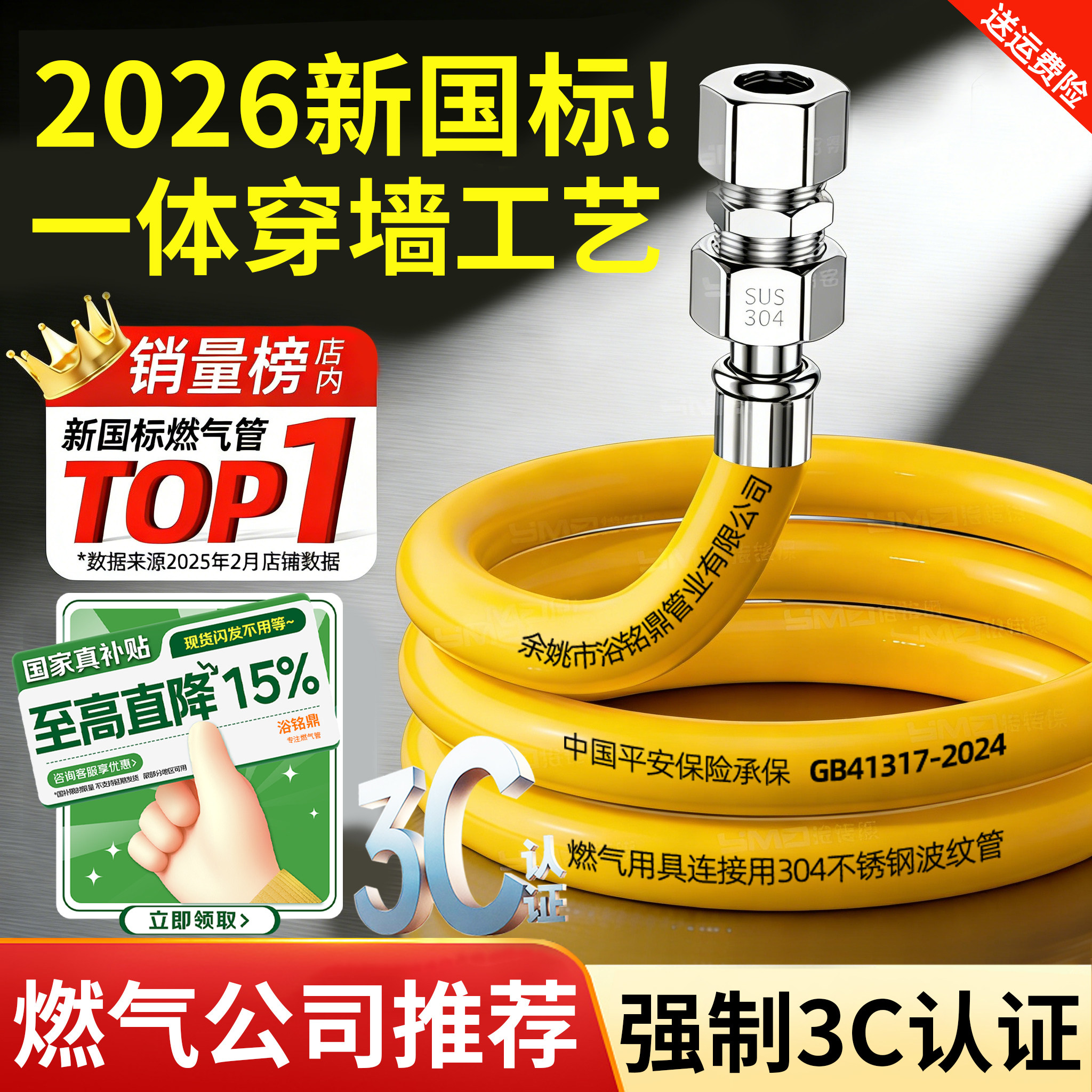 2026新国标不锈钢波纹燃气管天然煤气热水器管道软管专用连接管子