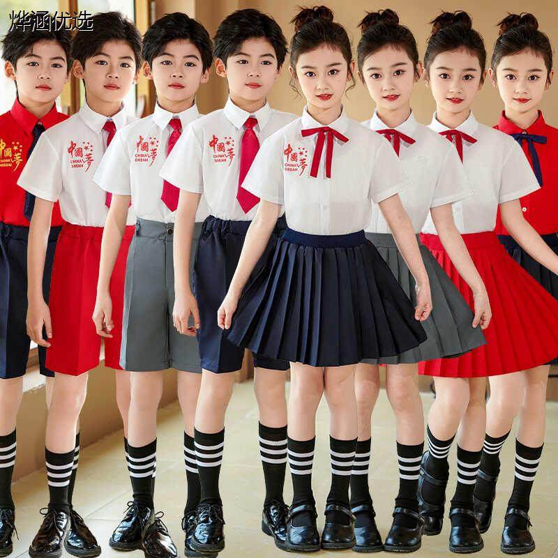 六一儿童大合唱演出服小学生朗诵表演服英伦风校服男女童短袖套装