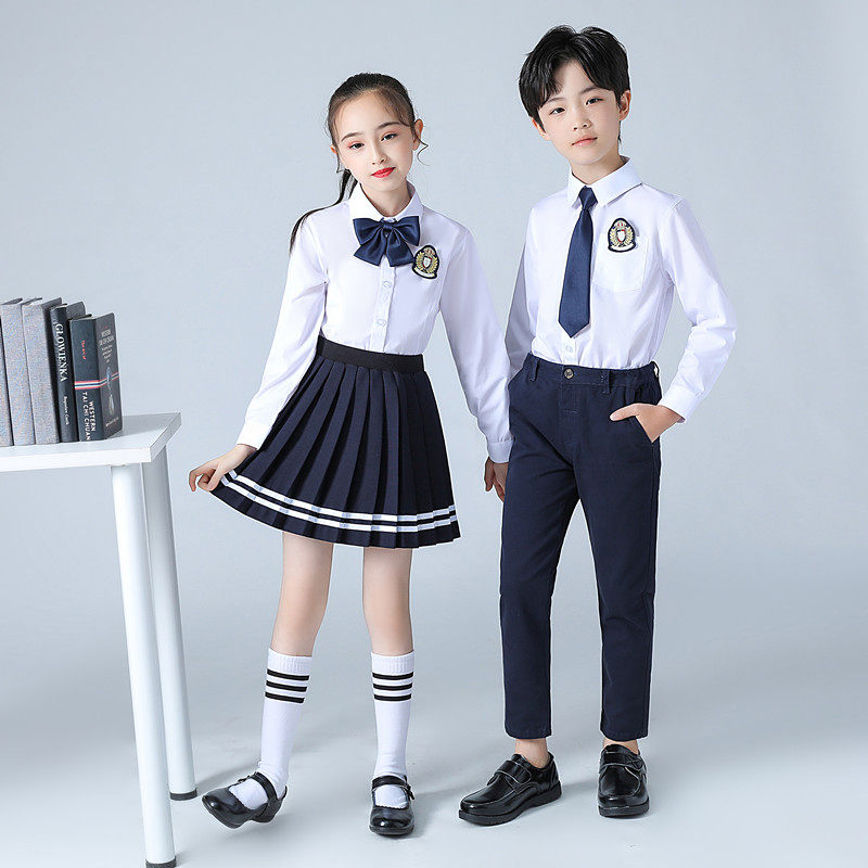 儿童演出服秋春中学生长袖衬衫英伦风校服合唱服朗诵团体班服制服