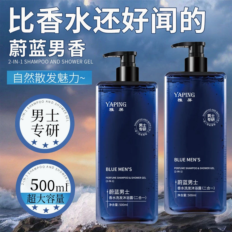 雅屏蔚蓝男士香水二合一洗发沐浴露祛后背痘温和清爽控油持久留香