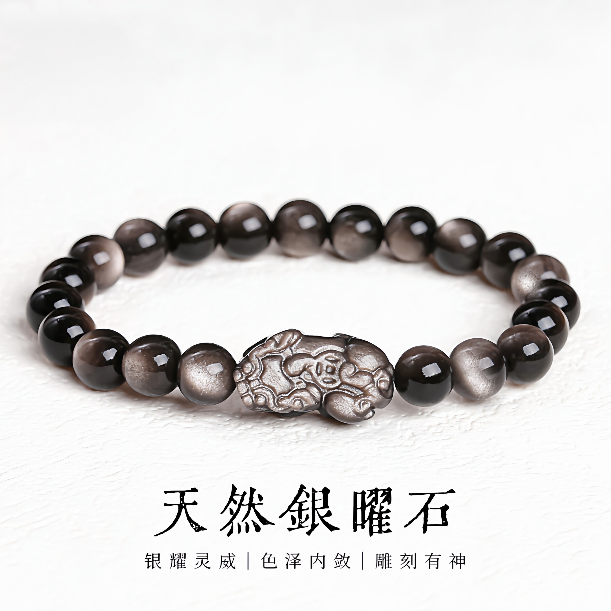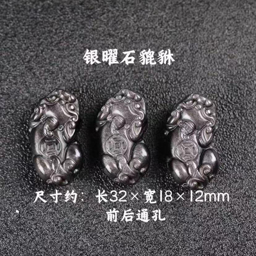 天然金曜石银曜石彩虹眼黑曜石貔貅吊坠手链醒狮男女diy饰品配件