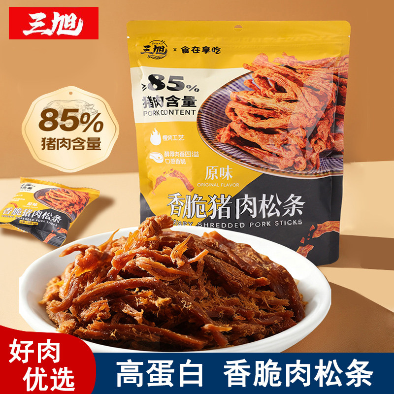 【6小包】三旭香脆猪肉松条独立包装原味高蛋白香脆解馋零食慢烤