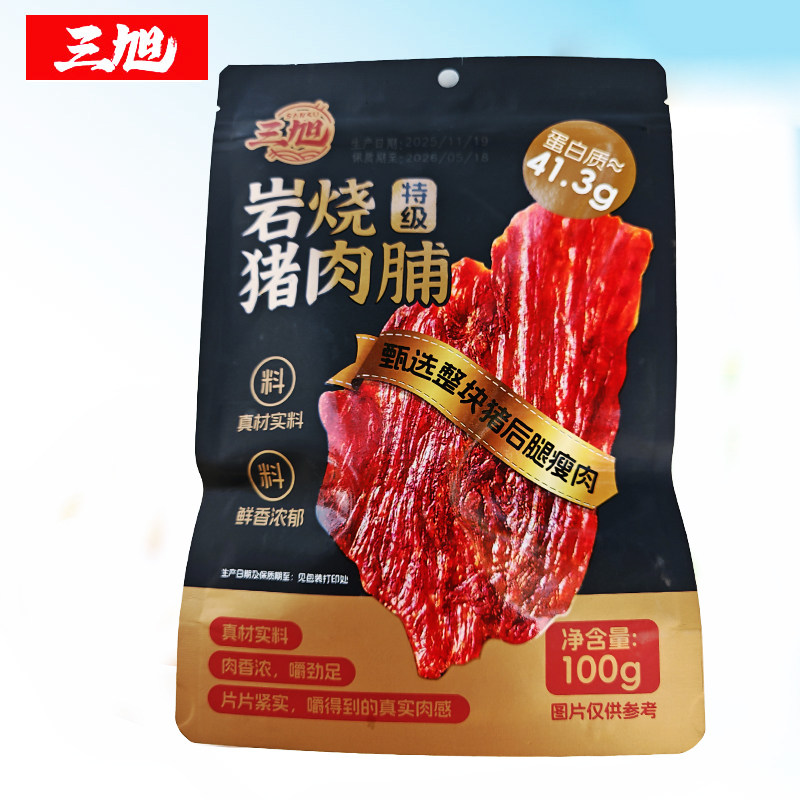 三旭国标特级原切猪肉铺原味80g*3袋靖江原产地高蛋白休闲小零食