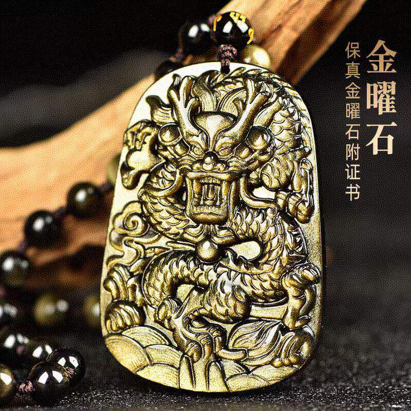 天然金曜石龙牌吊坠男士项链黑曜石生肖属龙挂件霸气个性礼物饰品