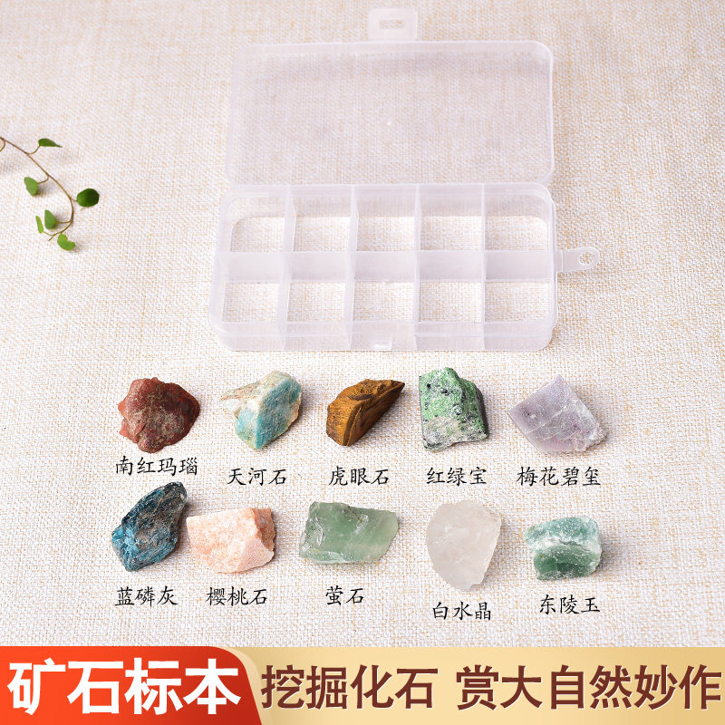 天然水晶原石标本套装收藏送礼塑料盒子多款整套矿石太阳石青金石