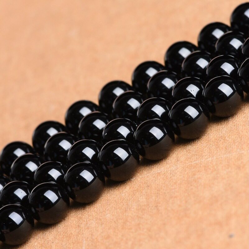 天然黑曜石散珠长链散珠乌金黑耀石收藏级佛珠圆珠子串珠DIY配件