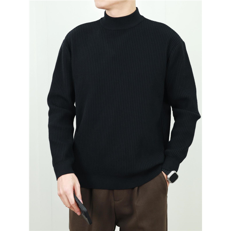 秋冬厚款半高领坑条螺纹针织衫毛衣时尚百搭韩版套头长袖线衣男士