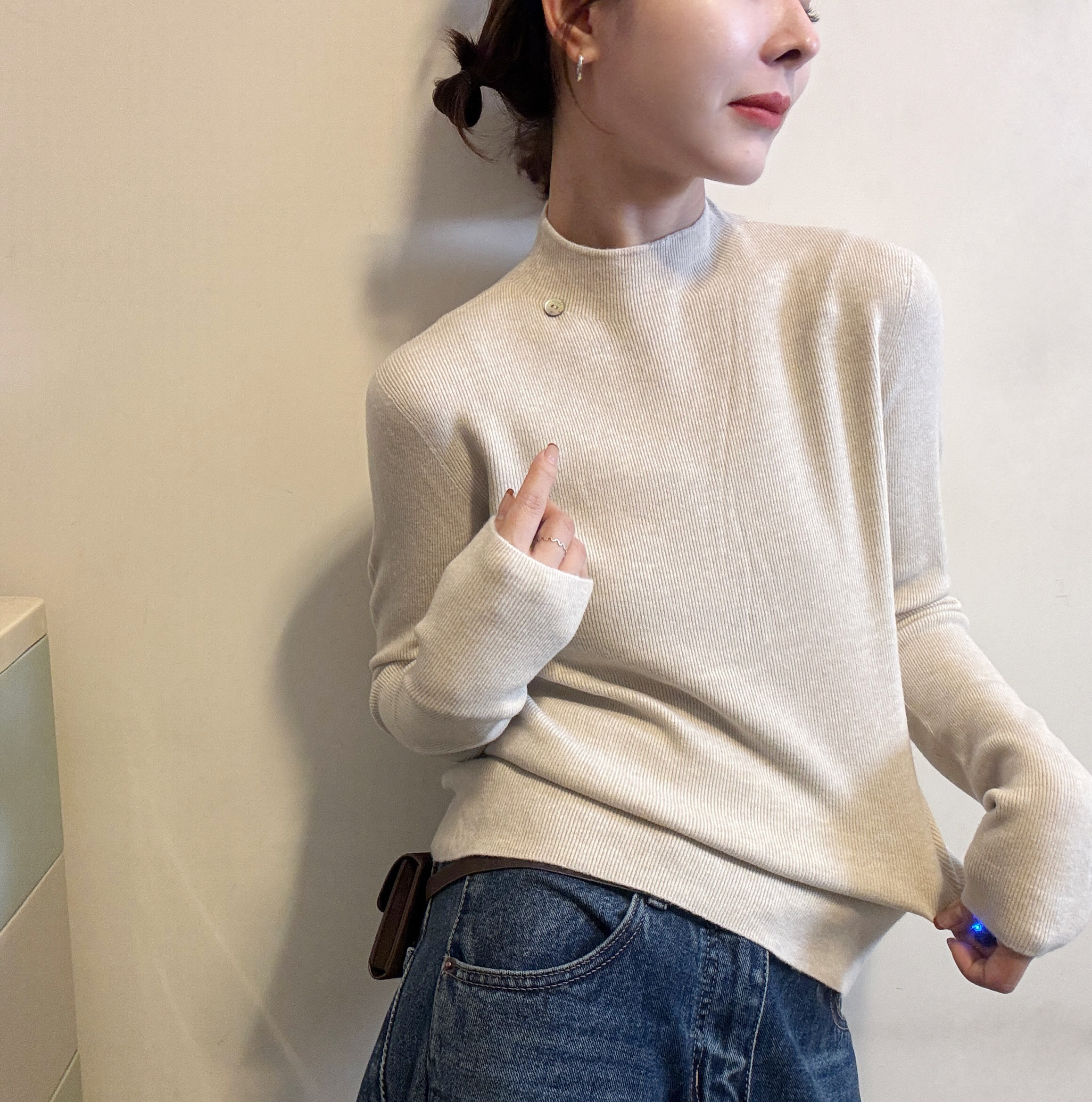 欧洲站2025秋冬时尚半高领一粒扣修身纯色净版螺纹针织衫打底衫潮