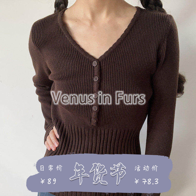 复古简约加厚保暖舒适修身V领排扣纯色套头长袖螺纹针织衫打底衫
