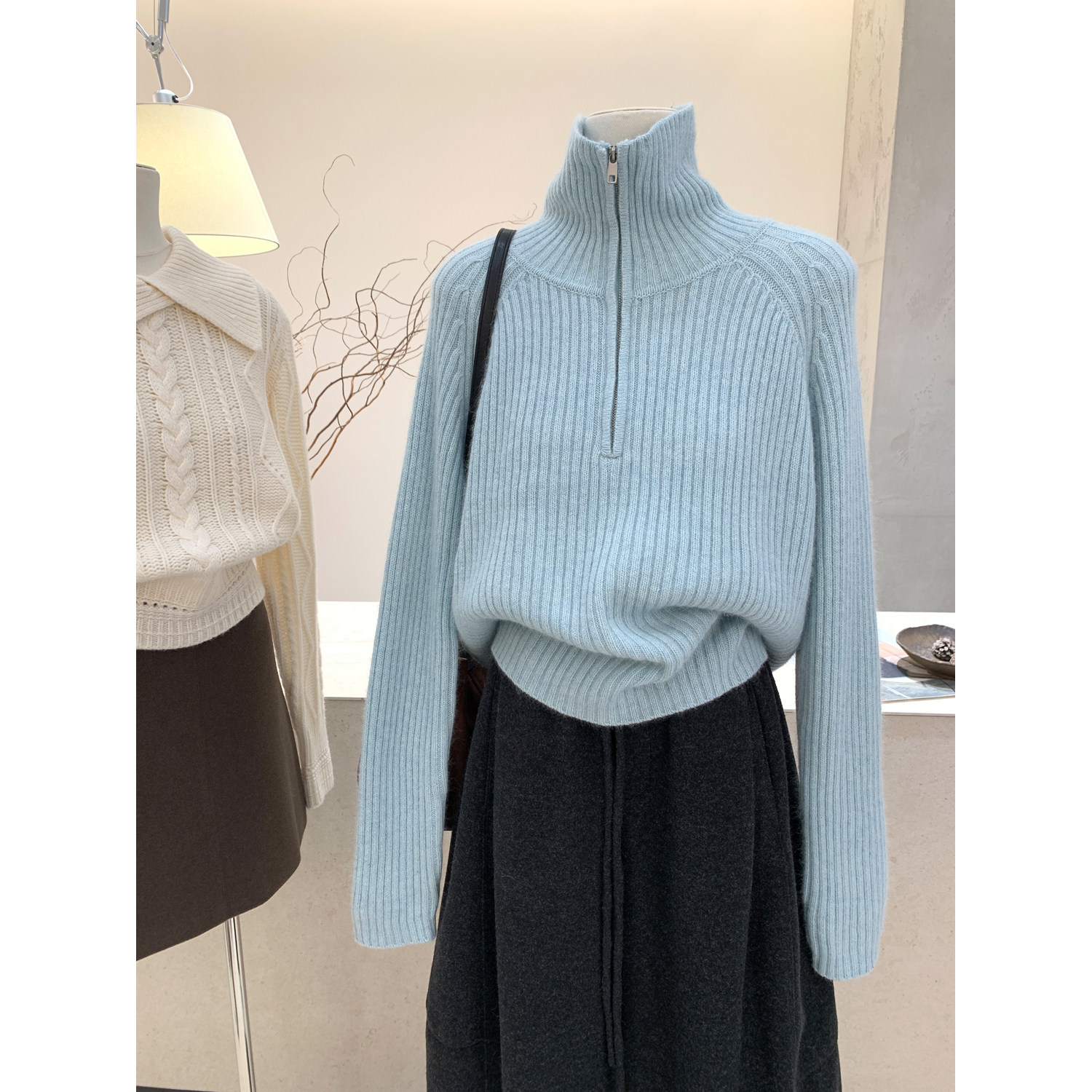 co*同款!极简高级显瘦 羊毛半拉链螺纹针织衫修身打底毛衣女