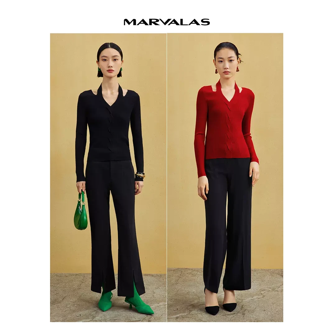 【呼呼严选粉丝专享】【商场同款】曼德诗羊毛挂脖螺纹针织衫秋气