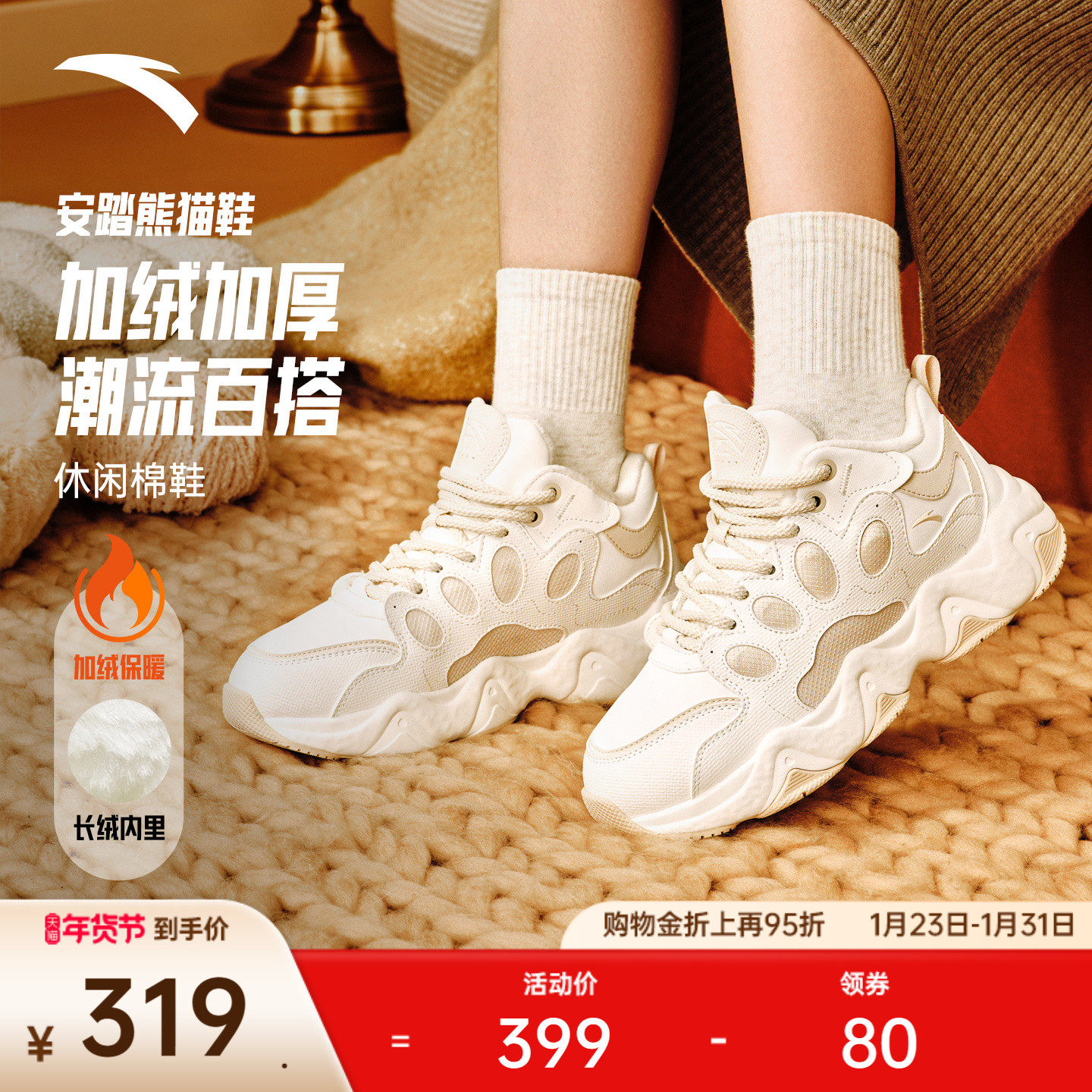 安踏熊猫鞋丨加绒加厚保暖棉鞋女鞋2025冬季新款运动鞋122548985