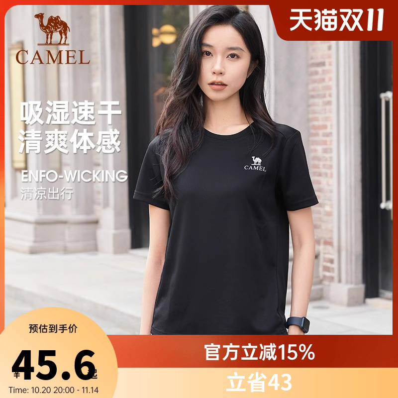 骆驼女装短袖T恤女士夏季圆领宽松上衣女生速干健身运动半袖体恤