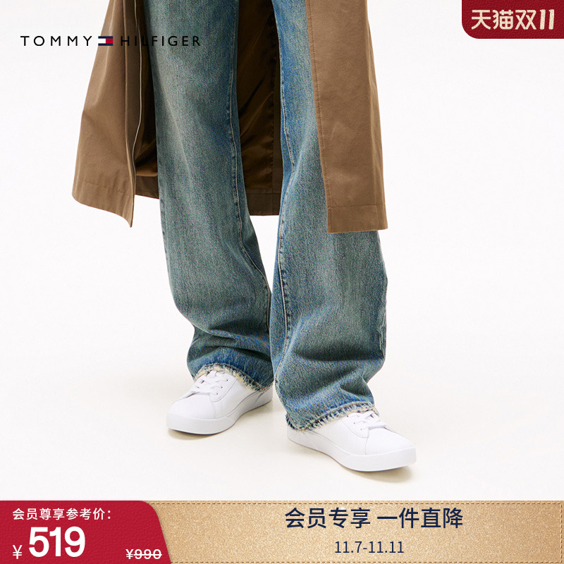 Tommy25春夏新款女装复古潮流金属标签牛皮革休闲运动小白鞋板鞋