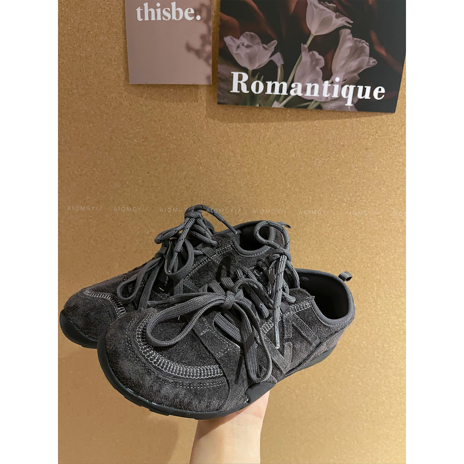 爱情魔鬼鱼 灰色平底系带运动休闲鞋女2025新款时尚百搭浅口单鞋