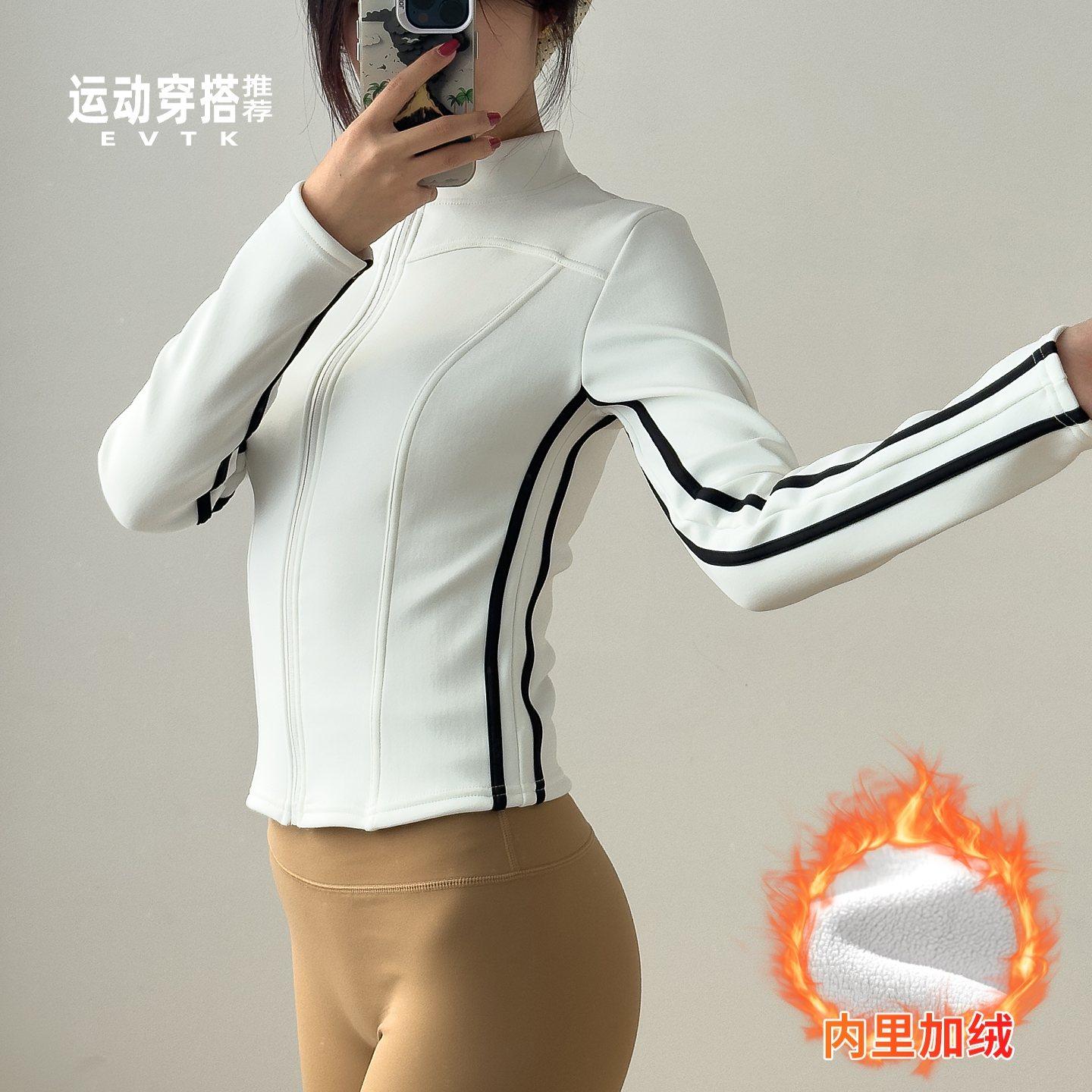 法国冬季加绒跑步速干健身服女套装晨跑运动服跳绳训练服瑜伽外套