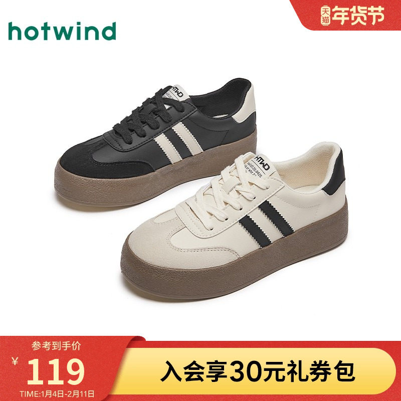 热风厚底德训鞋女2025年冬季新款百搭软底休闲板鞋复古阿甘女鞋