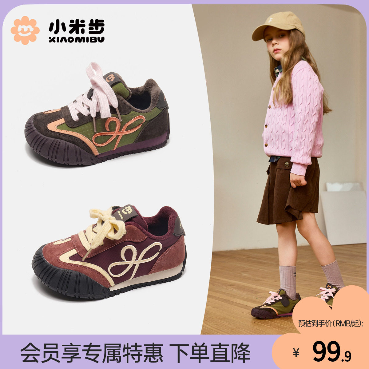 小米步女童运动鞋2025冬季新款儿童二棉童鞋女孩软底加绒阿甘鞋子