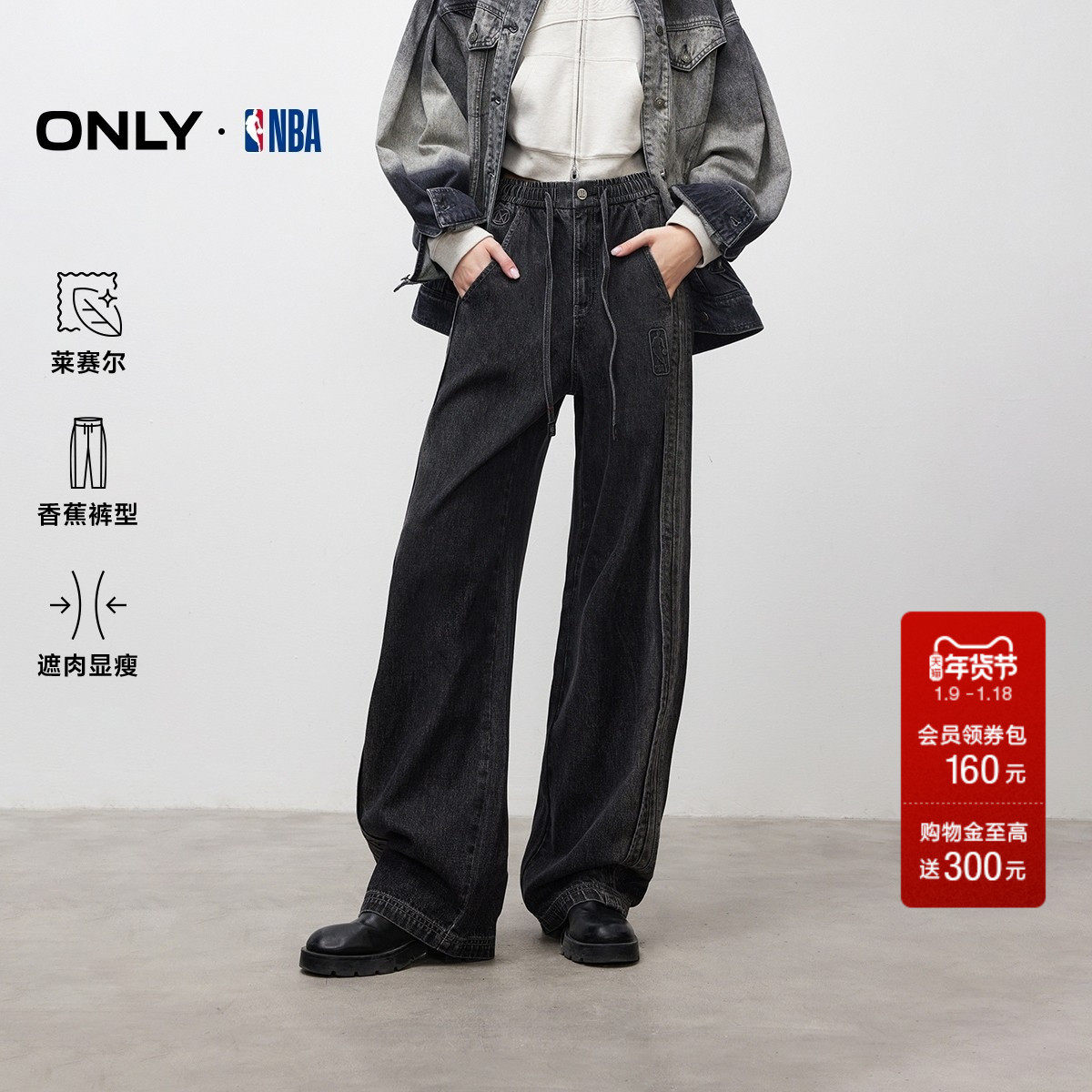 ONLY2025冬季新款NBA联名梨型友好香蕉裤宽松阔腿长裤牛仔裤女