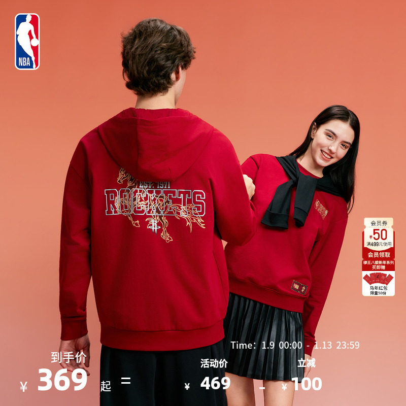 【新款】NBA官方湖人/火箭穆王八骏新年系列马年保暖连帽卫衣