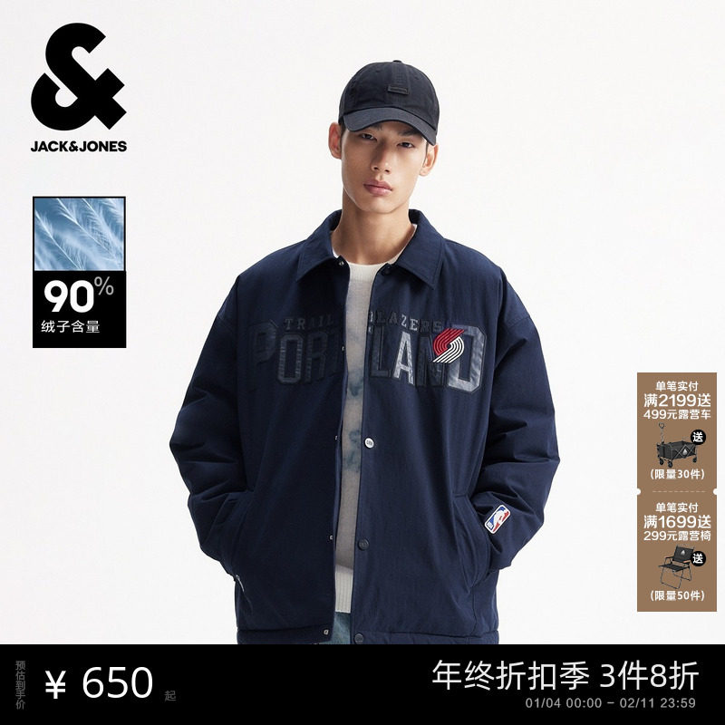 杰克琼斯NBA联名波特兰开拓者球队男装羽绒服冬新款翻领保暖外套